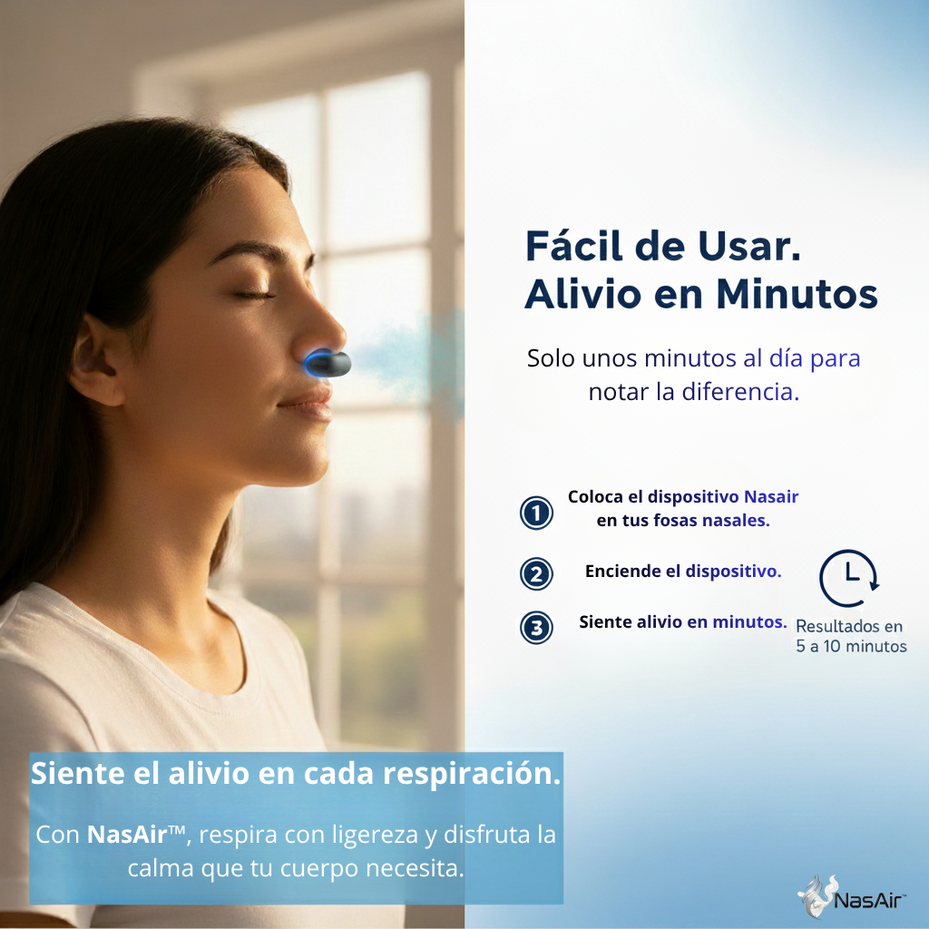 Con NasAir™, sentirás alivio desde los primeros minutos de uso — sin químicos, sin dependencia y con tecnología segura para tu salud.